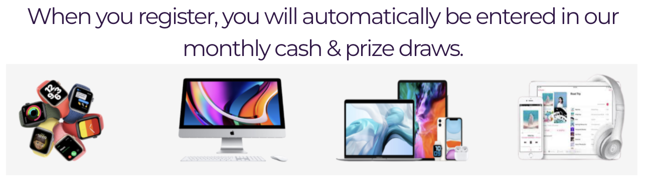 When you register, you will automatically be entered in our monthly cash & prize draws.